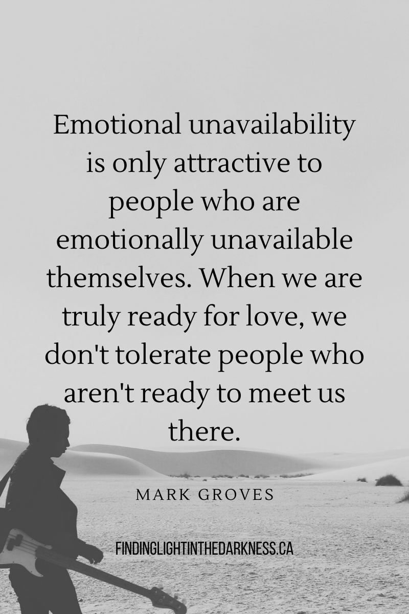 I know that isn’t an easy thing to face. The good news is, it’s not permanent. You CAN become emotionally available. However, it is going to take some work. You have to do some self-reflection and really dig into your patterns and behaviours. Trace them back to their origins. Stop avoiding or distracting yourself from feeling and give yourself permission to actually FEEL your feelings.